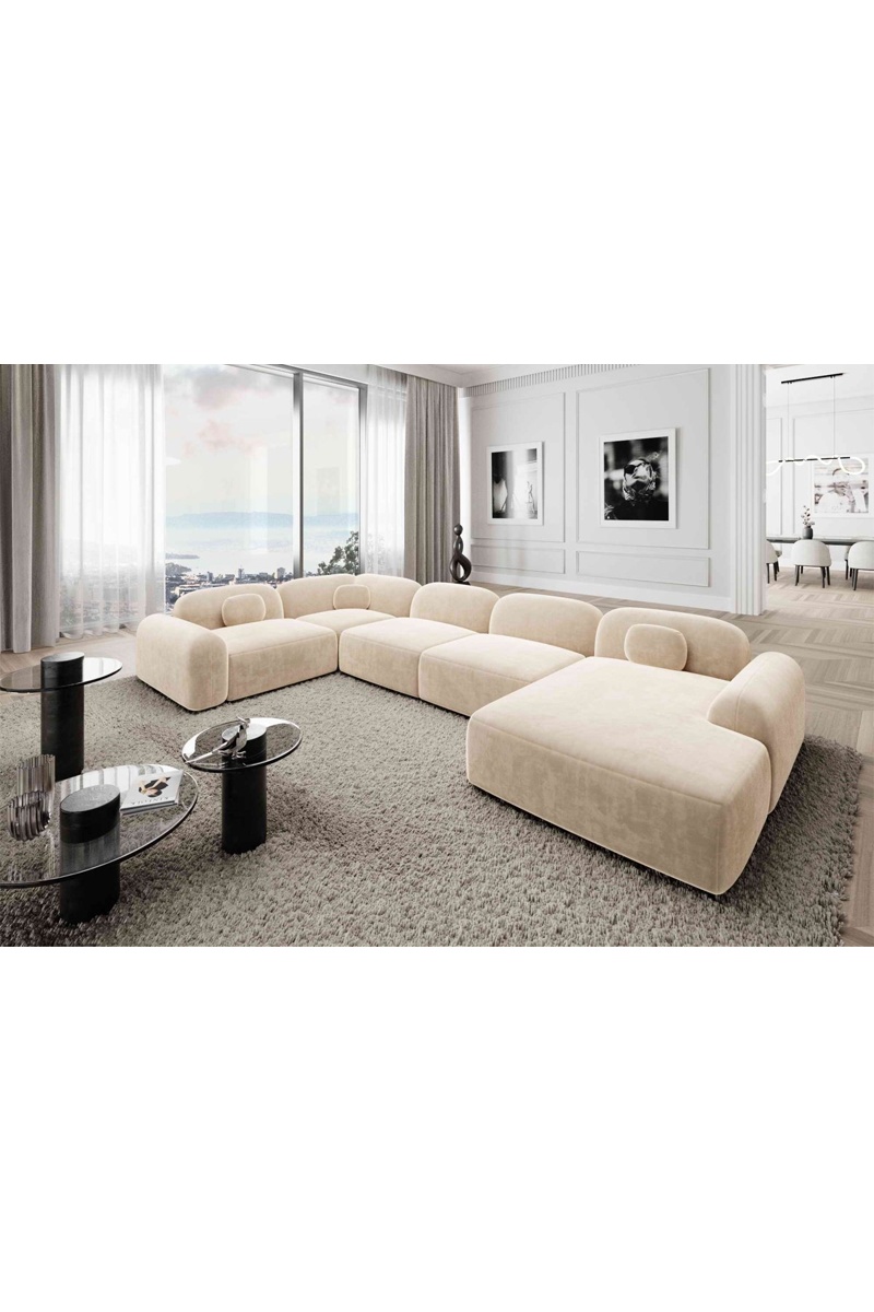 Canapé d'angle gauche panoramique Labucca - Crème - 7 places - En velours