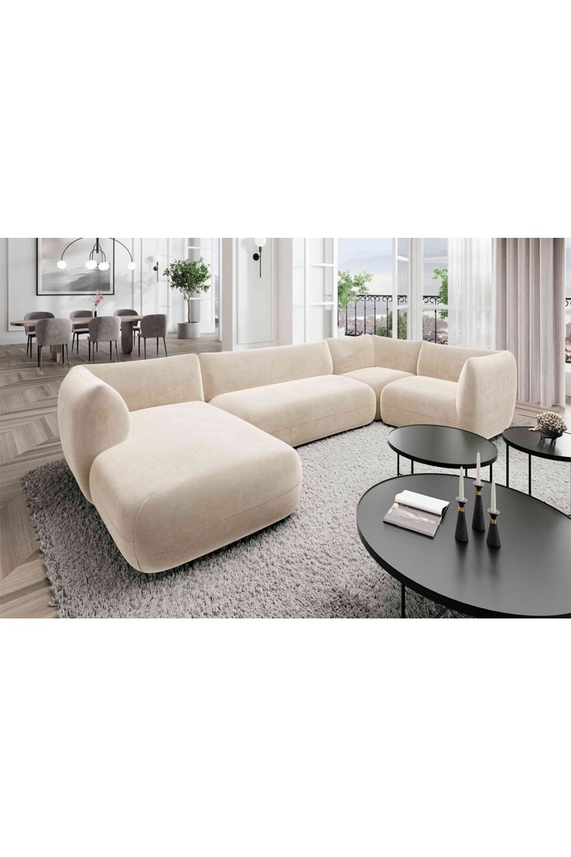 Canapé d'angle droit panoramique Leroy - Crème - 7 places - En velours