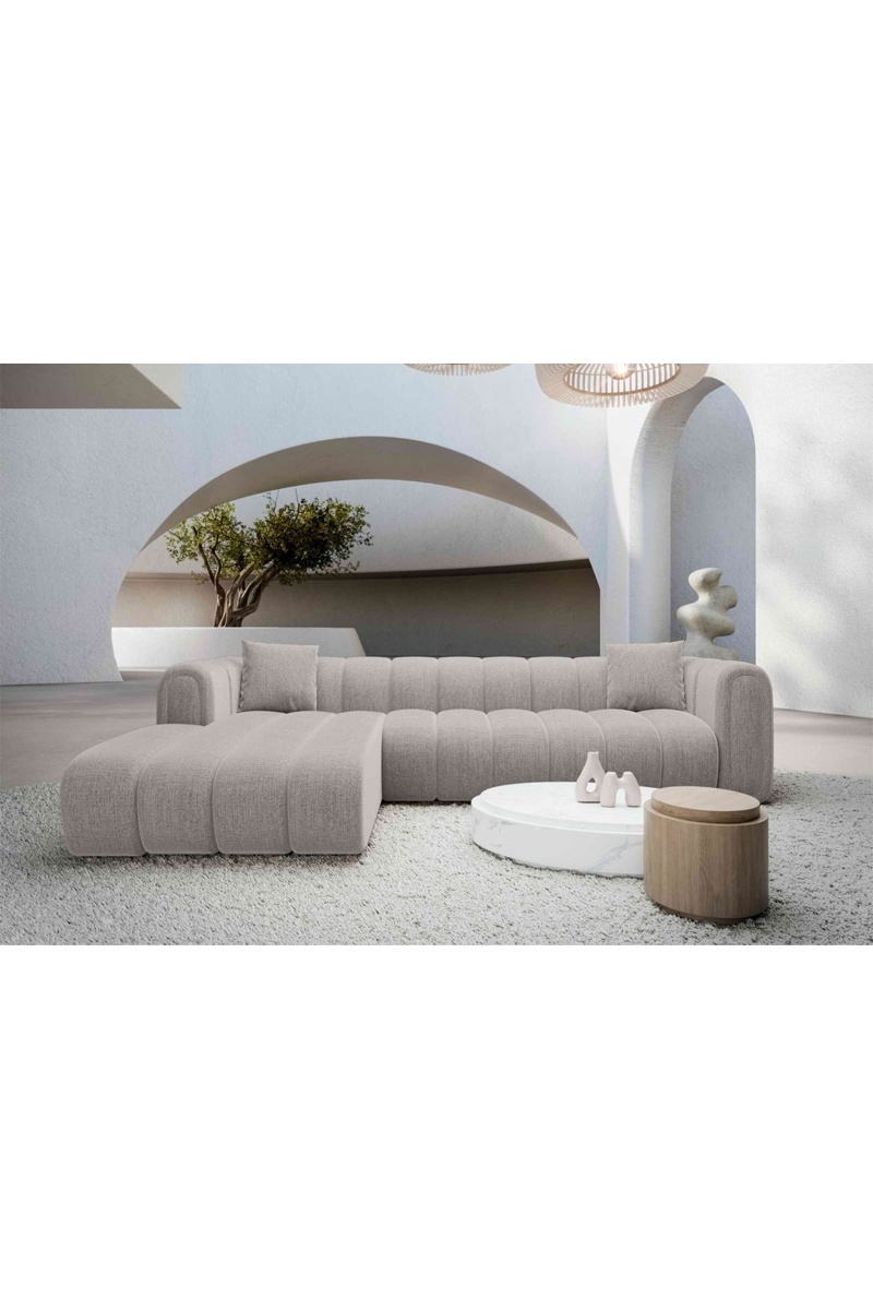 Canapé d'angle gauche Luma - Gris clair - 5 places - Tissu structuré