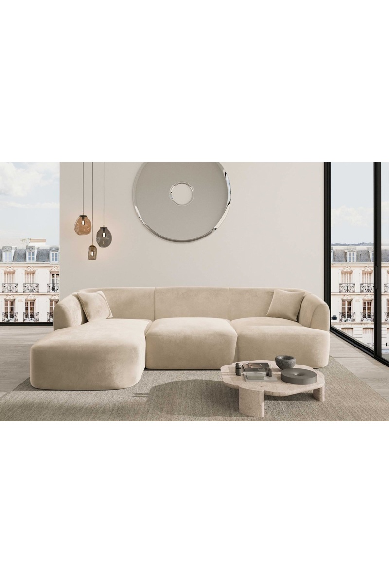 Canapé d'angle gauche Form Ozura - Crème - 5 places - Tissu toucher velours