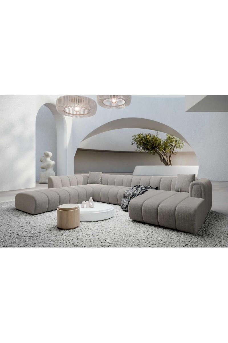 Canapé d'angle gauche panoramique Luma - Gris clair - 7 places - Tissu structurel