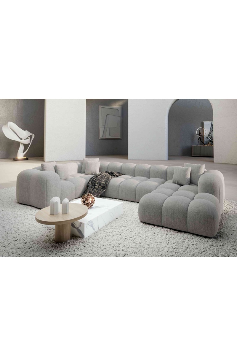 Canapé d'angle gauche panoramique Nuvola - Gris clair - 7 places - Tissu structurel