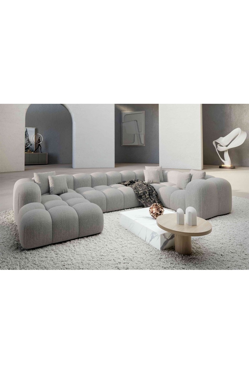 Canapé d'angle droit panoramique Nuvola - Gris clair - 7 places - Tissu structurel