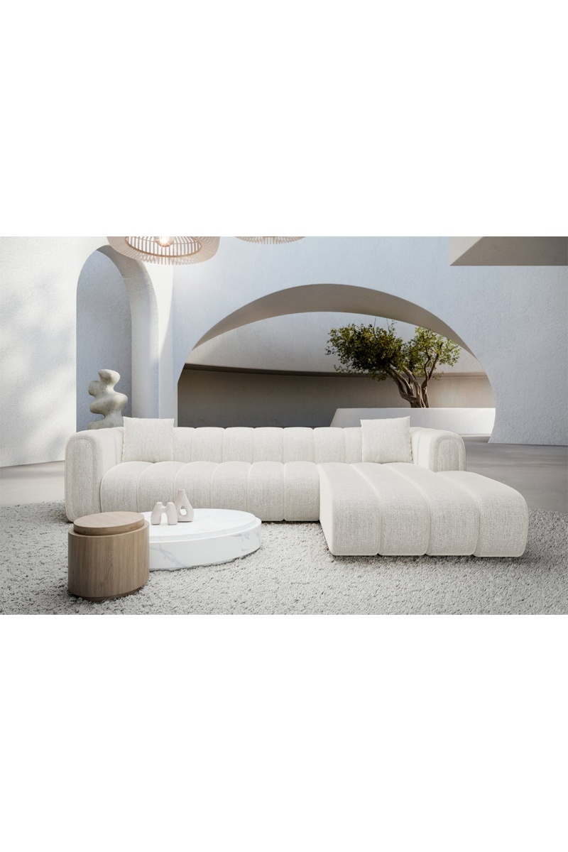 Canapé d'angle droit Luma - Blanc - 5 places - Tissu structuré