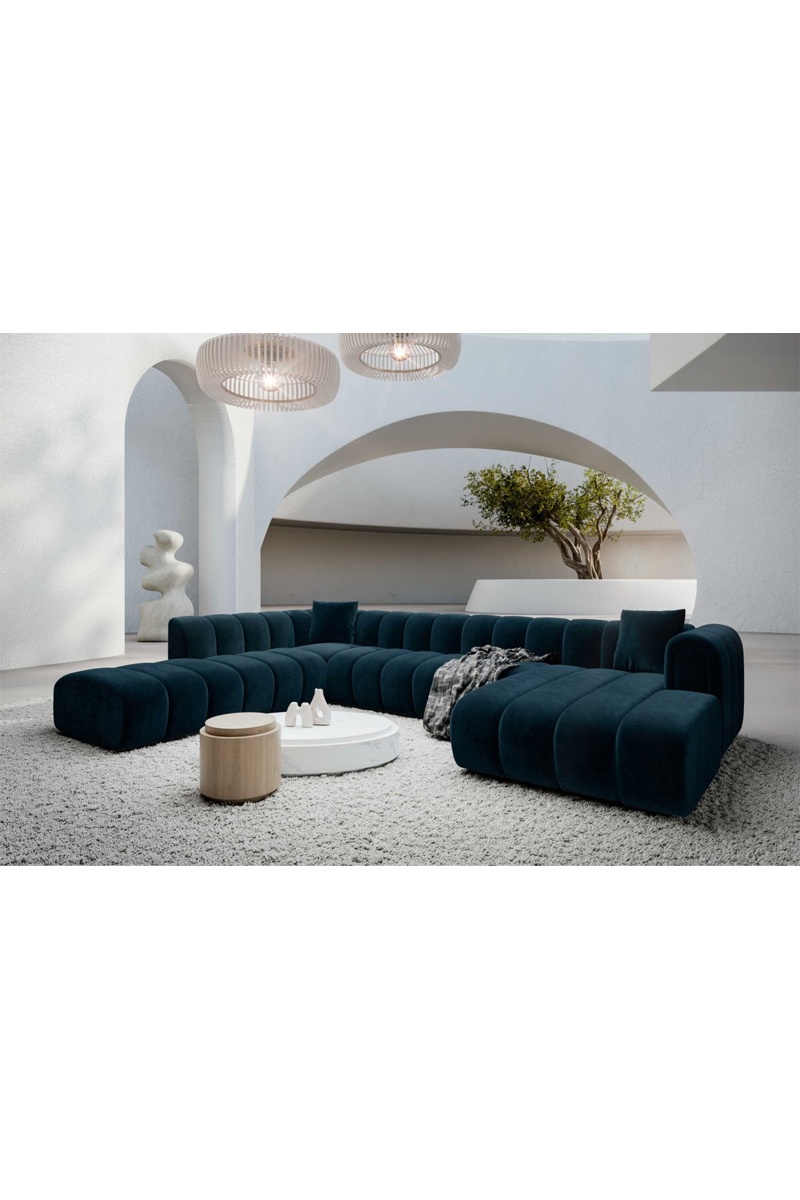 Canapé d'angle gauche panoramique Luma - Bleu foncé - 7 places - En velours