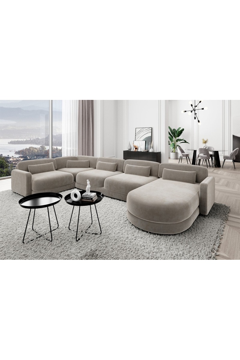 Canapé d'angle gauche panoramique Migala - Beige foncé - 7 places - En velours