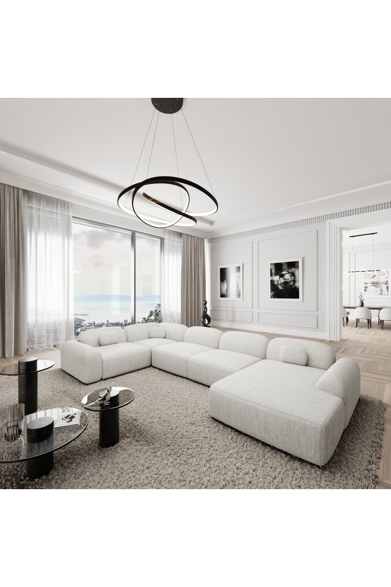 Canapé d'angle droit Labucca - Blanc - 7 places - En polyester