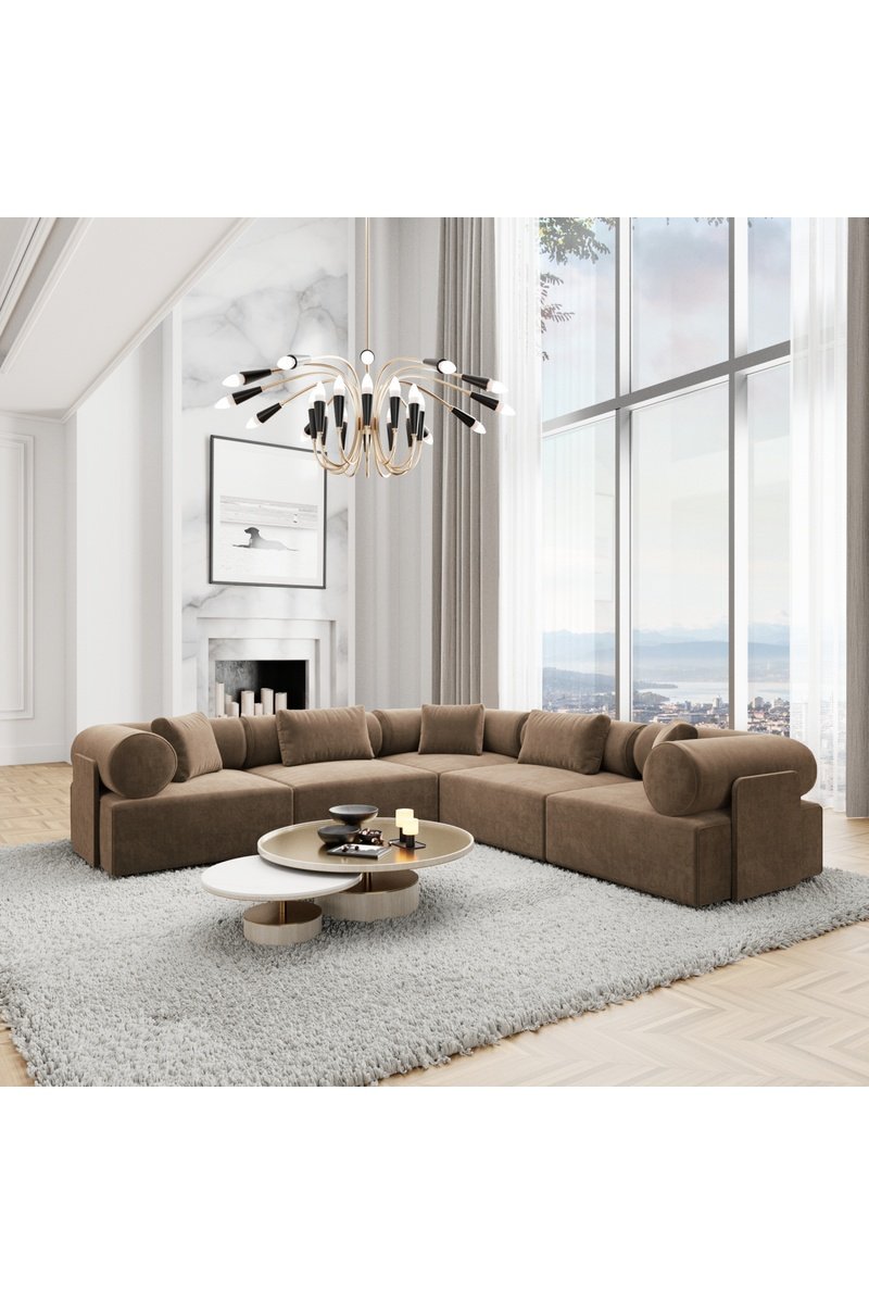 Canapé d'angle Ragusa - Marron - 6 places - En polyester