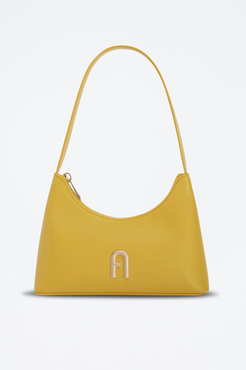 Sac porté épaule en cuir de veau Diamante - Moutarde