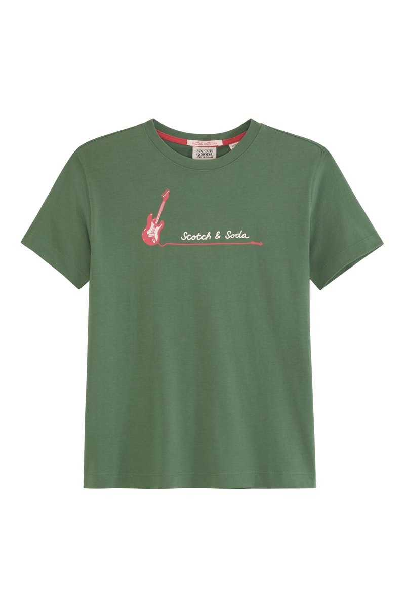 Motif guitare et logo devant.