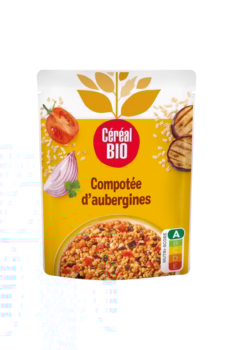 Ingrédients : Eau, aubergines* 21,7%, tomates* 18,4%, ORGE mondé* 9,6%, oignons* 5,9%, huile de tournesol*, protéines de SOJA* texturées 3,7%, concentré de tomate* 3,4%, farine de BLE*, sucre de canne*, sel de mer, persil*, ail* en poudre, cumin*. Fabriqué dans un atelier qui utilise CELERI, FRUITS A COQUE, MOUTARDE, OEUF, LAIT, SESAME