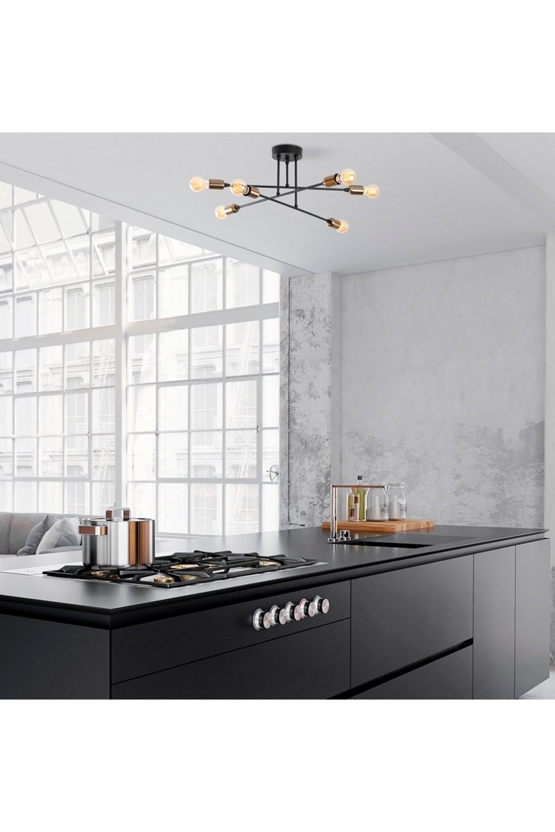 Suspension Flower - Noir et doré - 6 x 40 W