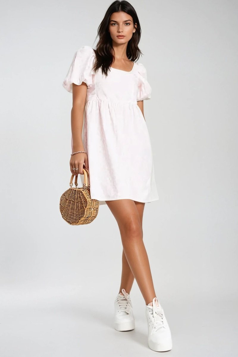 Robe patineuse à manches courtes bouffantes.