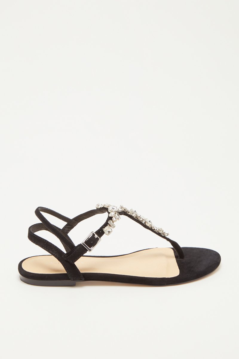 Sandales en cuir de chèvre velours Haria - Noir