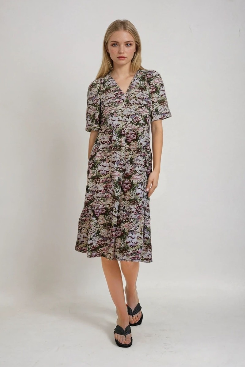 Robe droite - Blanc et vert foncé - Monki