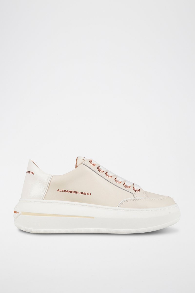 Baskets plateformes en cuir - Ecru et blanc