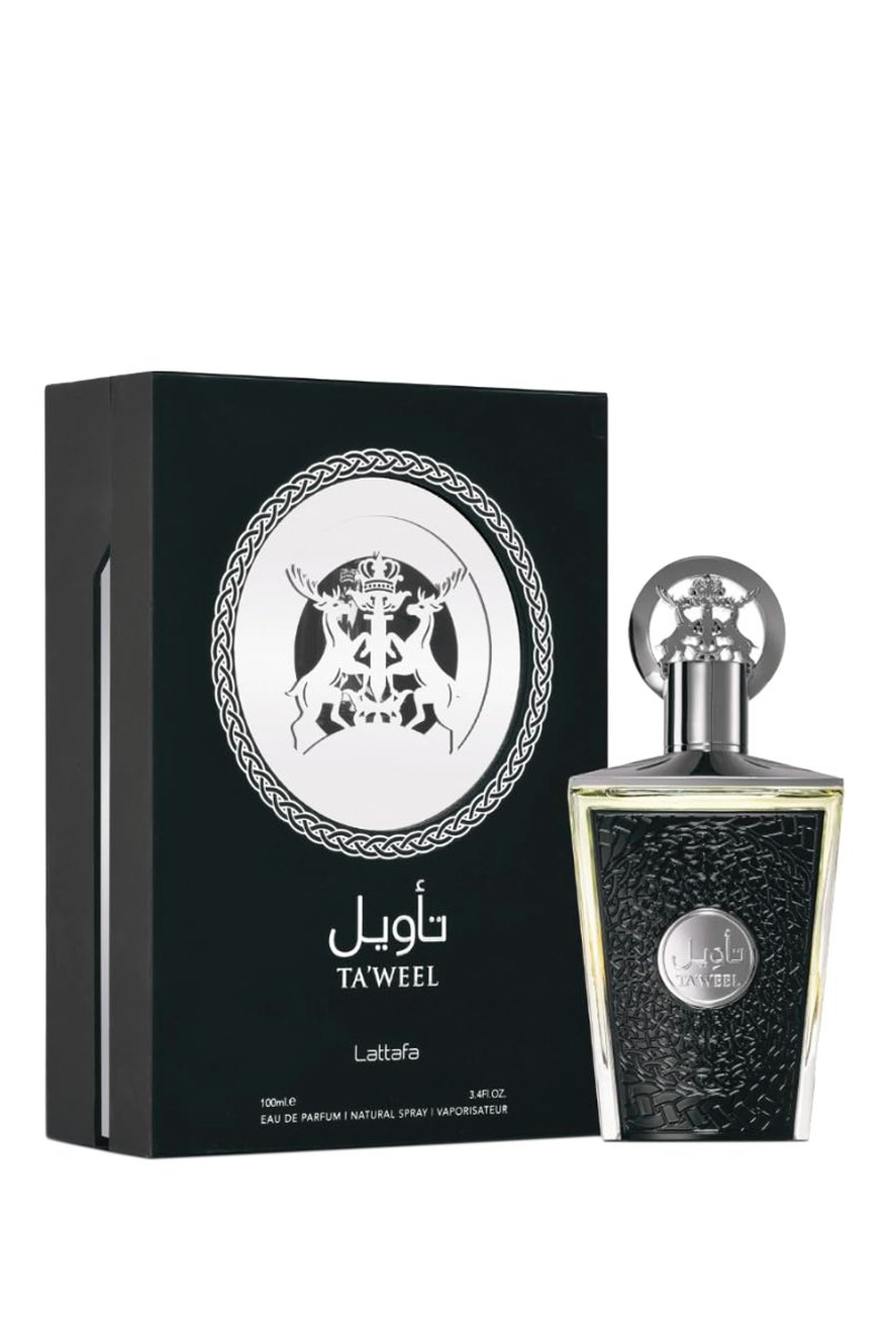 Ta'weel, lancé en 2023, est un parfum pour homme et femme de Lattafa Perfumes. Les notes de tête de ce parfum sont le gingembre, la bergamote, la noix de muscade et le genièvre. Les notes de cœur de ce parfum sont la lavande et la fleur d'oranger, et les notes de fond l'ambroxan, le vétiver, le patchouli et le cuir.