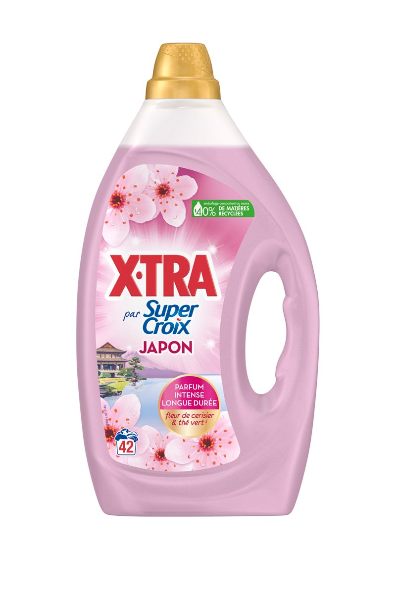 Laissez-vous donc tenter par la lessive Super Croix par XTra Japon au parfum dépaysant fleur de cerisier et thé vert.