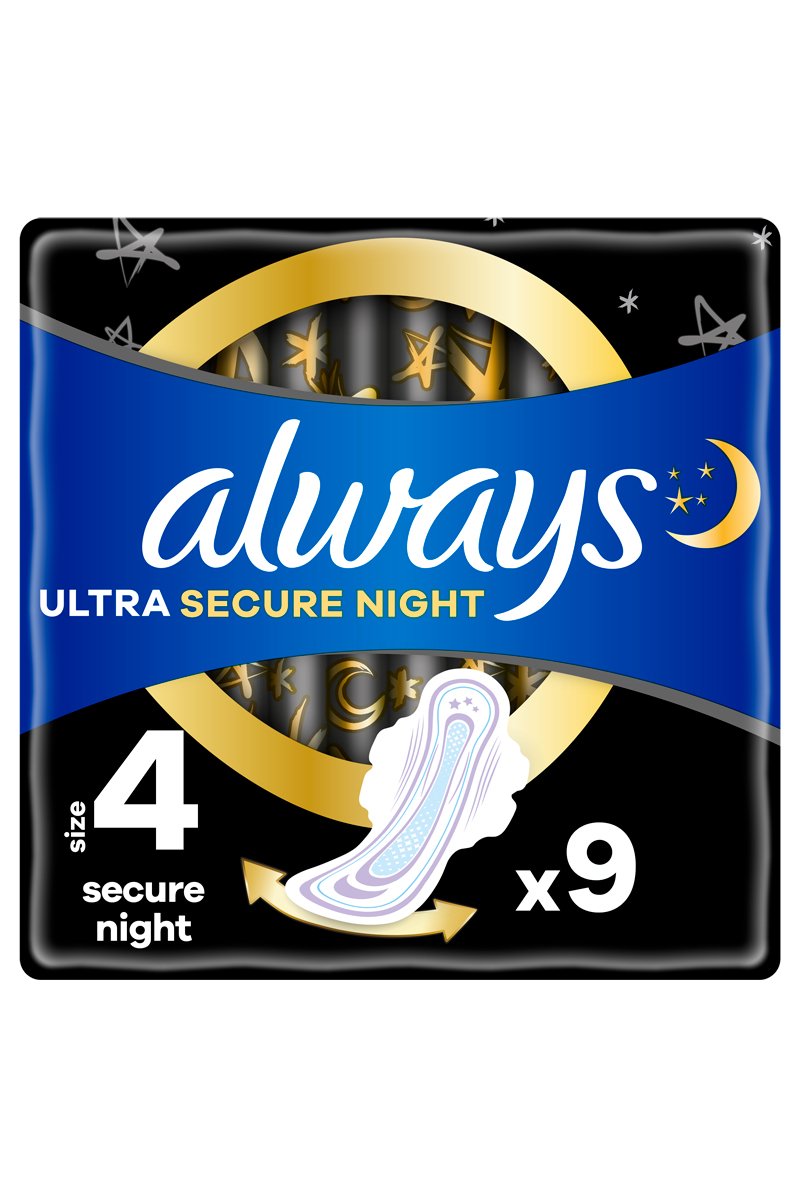 9 serviettes hygiéniques avec ailettes Always Ultra Secure night.