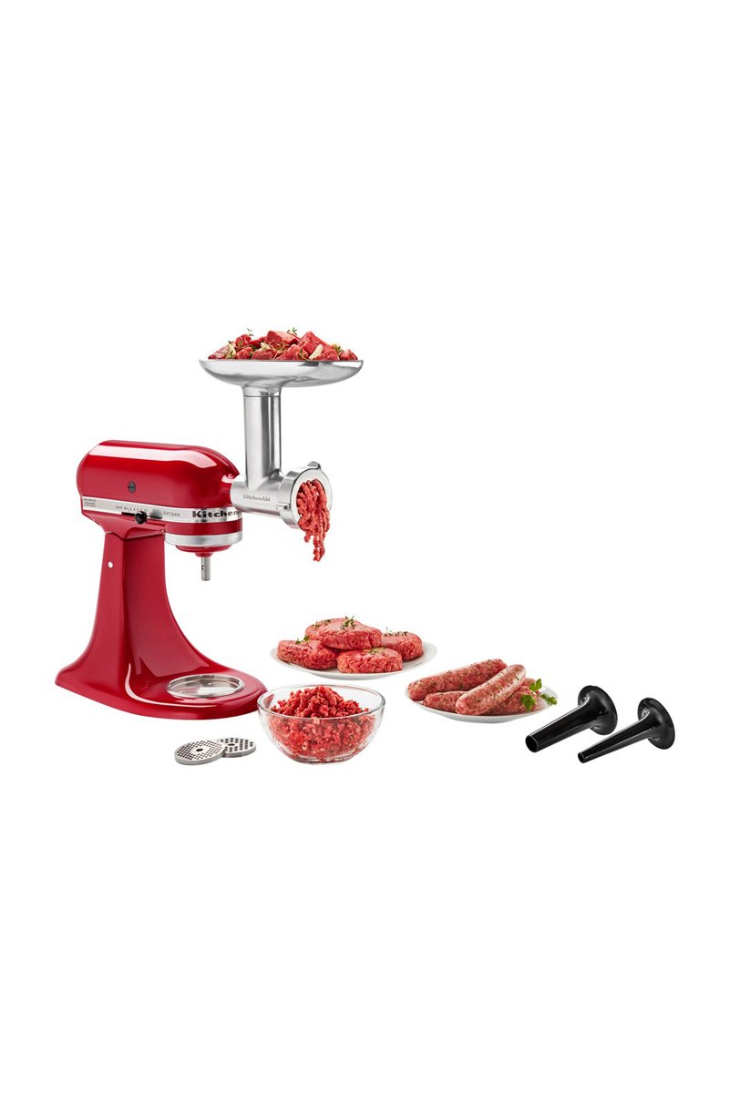 Hache la viande fraîche pour confectionner des saucisses et des steaks hachés, râpe les fromages à pâte dure, réduit le pain en miettes ou en chapelure, etc.