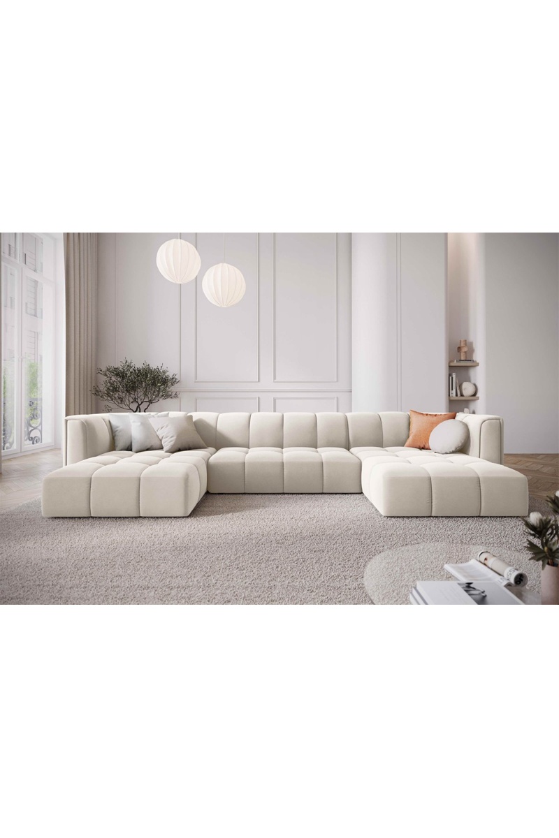 Canapé panoramique Adams - Beige clair - En tissu velours