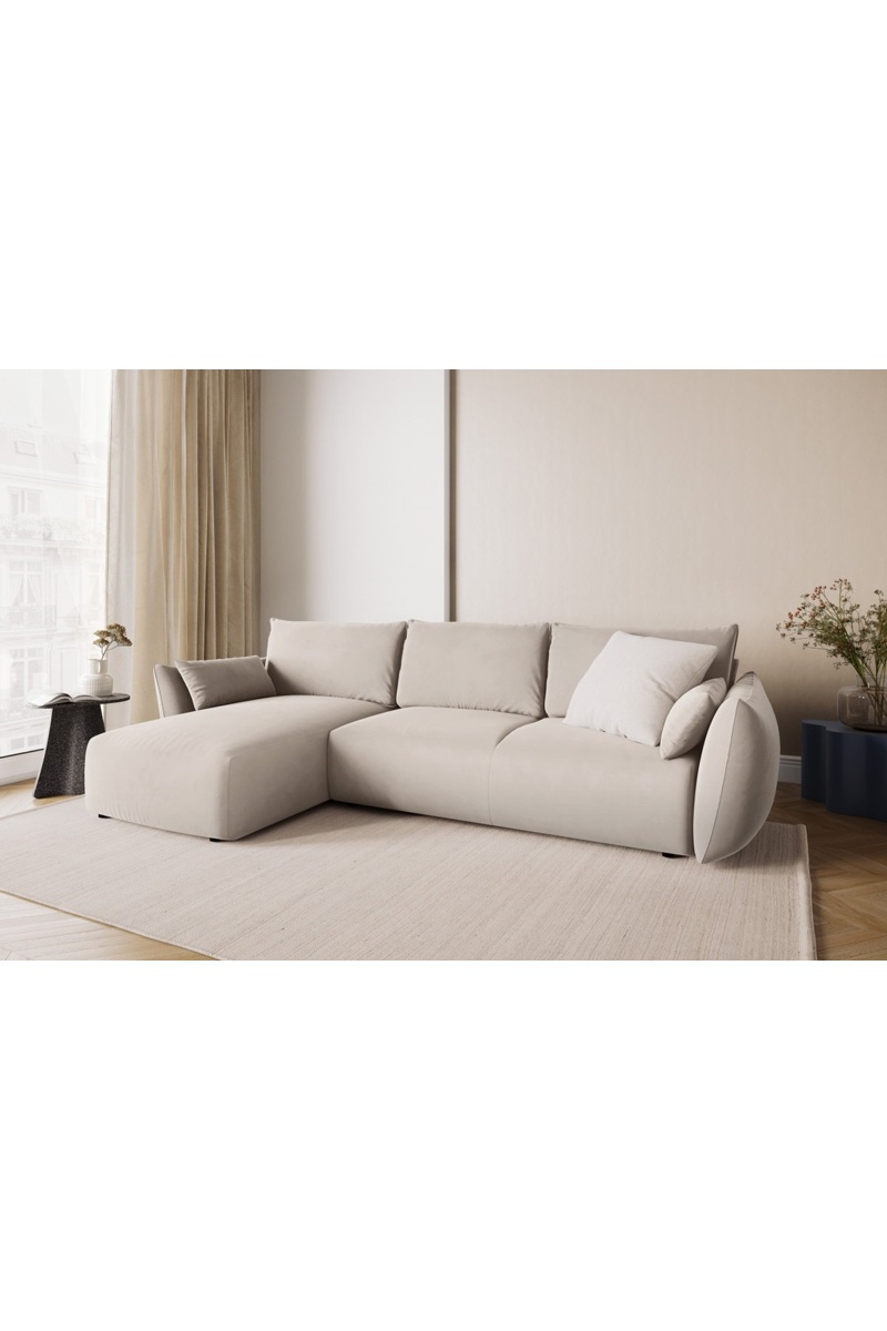 Canapé d’angle gauche convertible Matera - Beige - 4 places - En tissu velours
