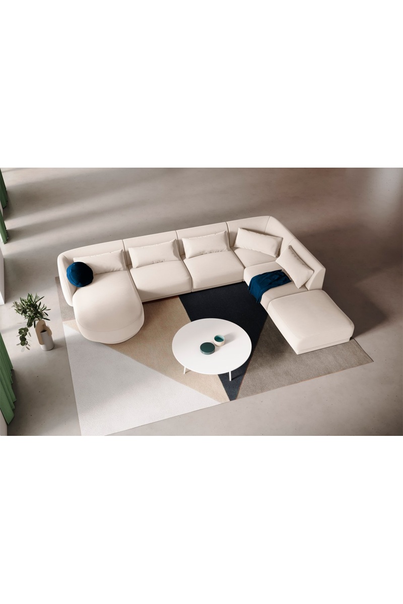Canapé d'angle droit panoramique Tulum - Beige clair - 6 places - En velours