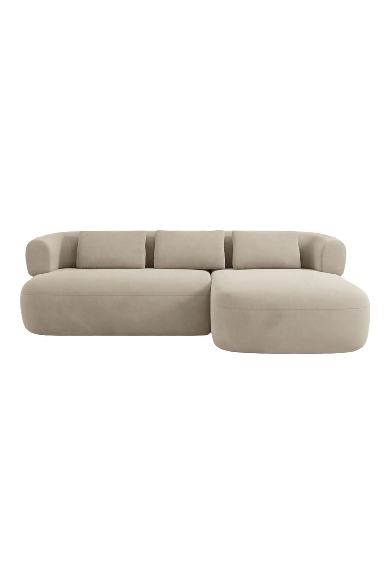 Canapé d'angle droit Aldrin - Beige - 3 places - En tissu velours