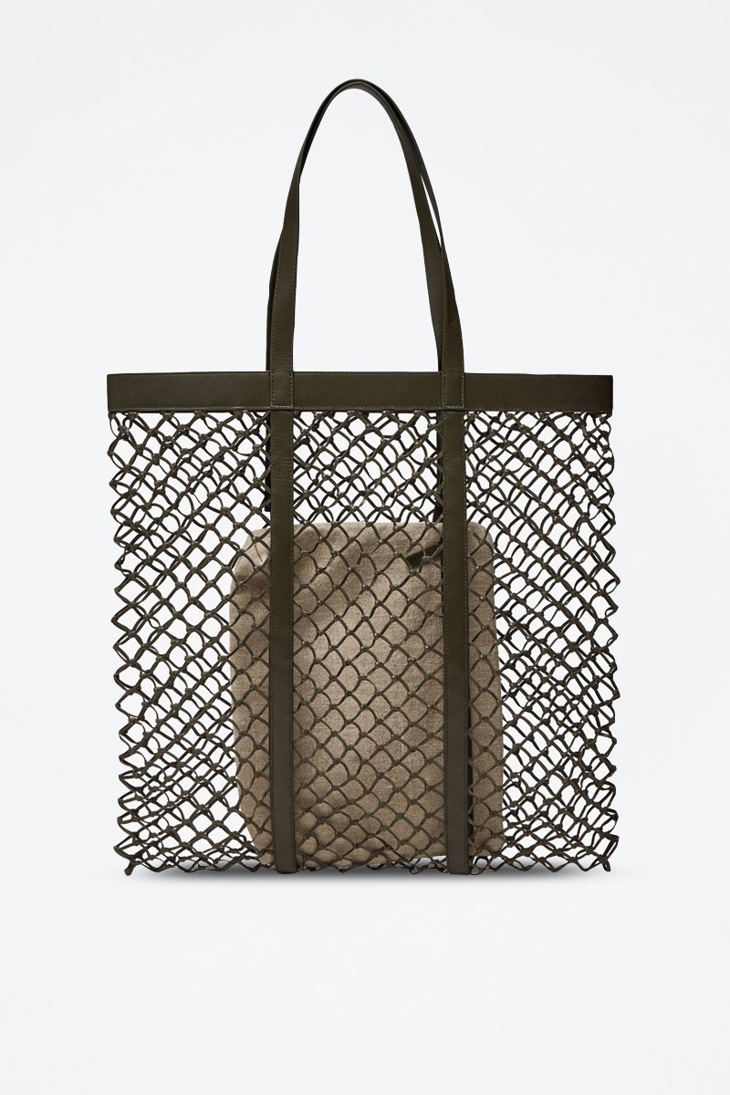 Tote bag tressé en cuir et sac pochette en lin - Kaki