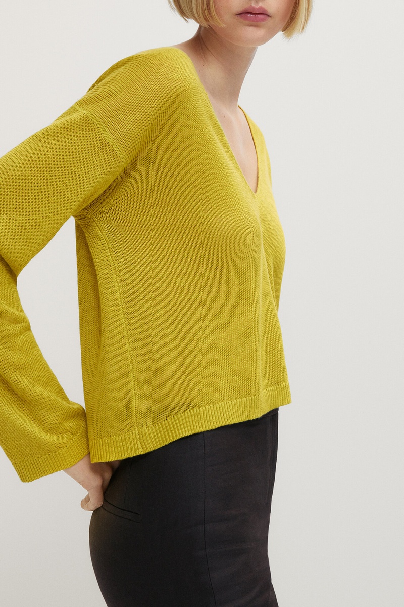 Pull 100% lin col v - Vert citron