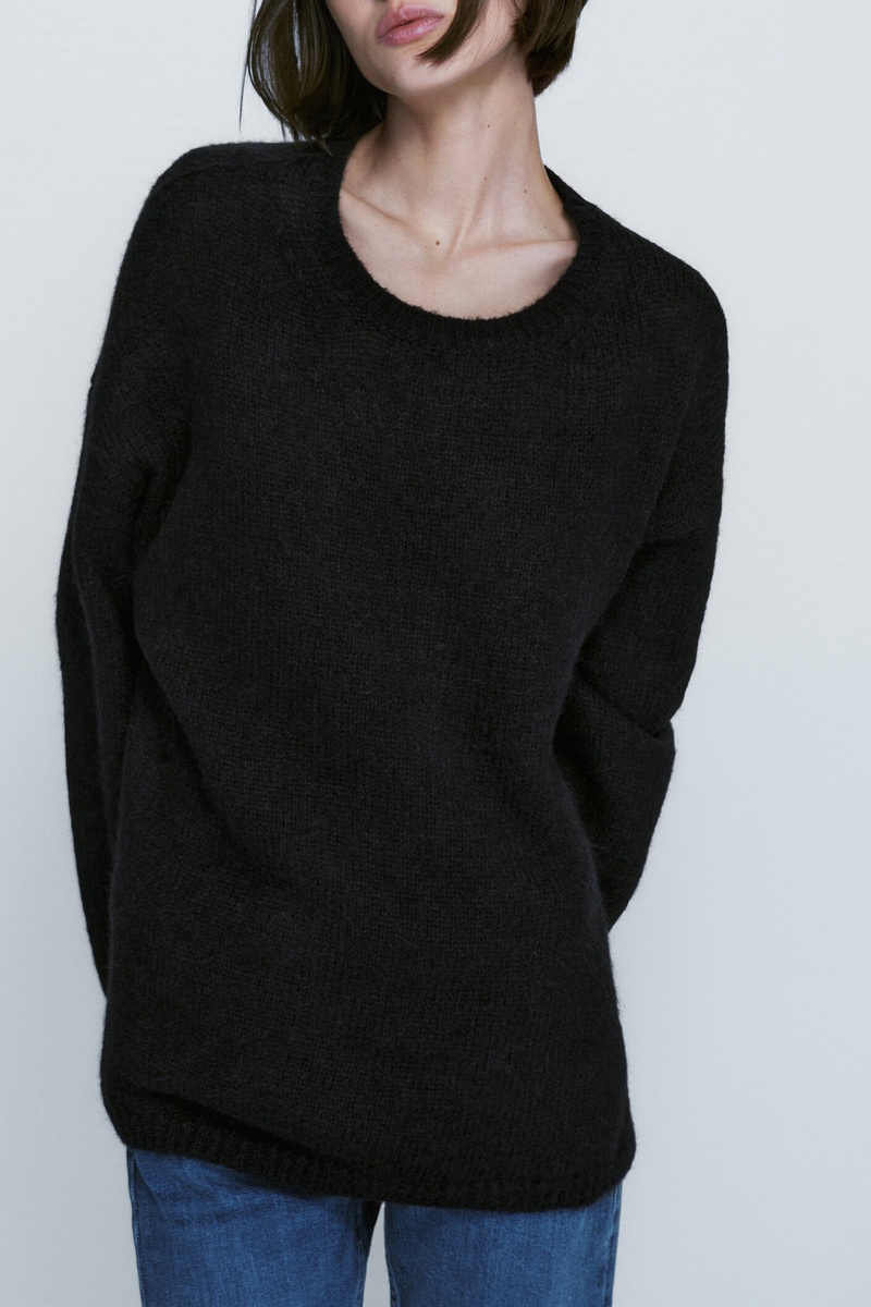 Pull cape fil peigné - Noir