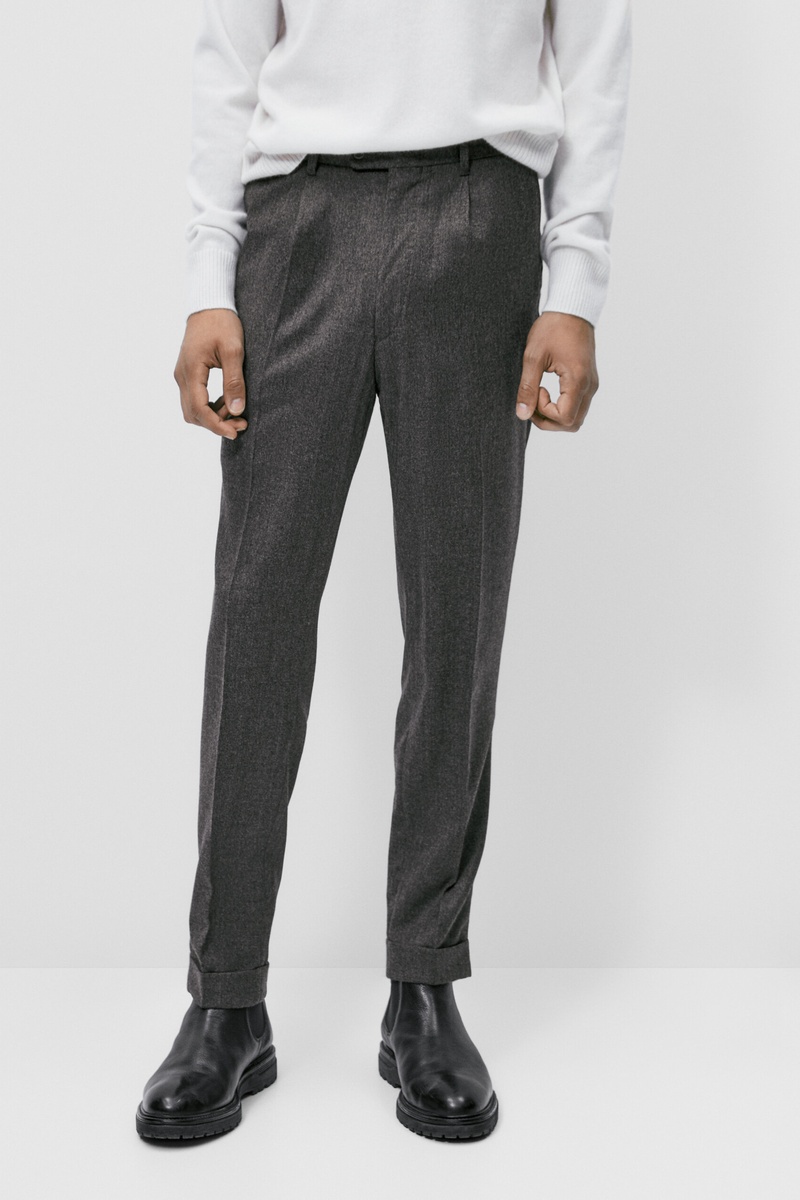 Pantalon habillé en flanelle de laine lavable - Gris
