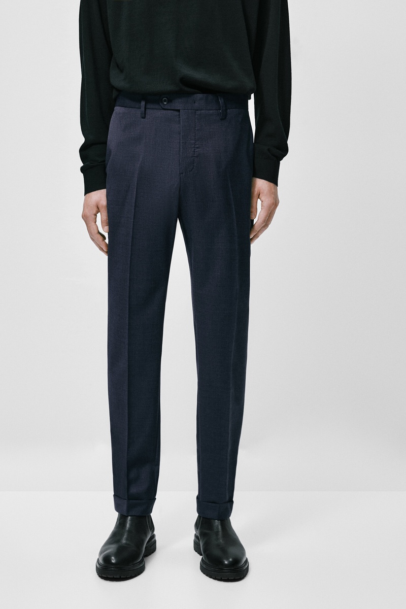Pantalon de costume pied-de-poule pure laine - Bleu marine