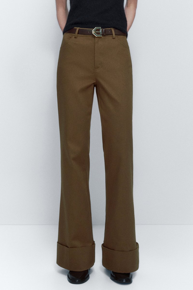 Pantalon évasé revers dans bas - Kaki