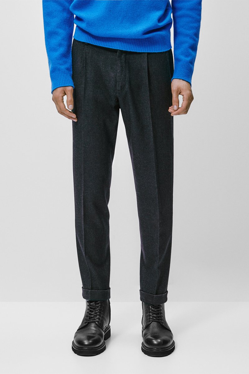 Pantalon pinces en laine mélangée teintée - Bleu marine