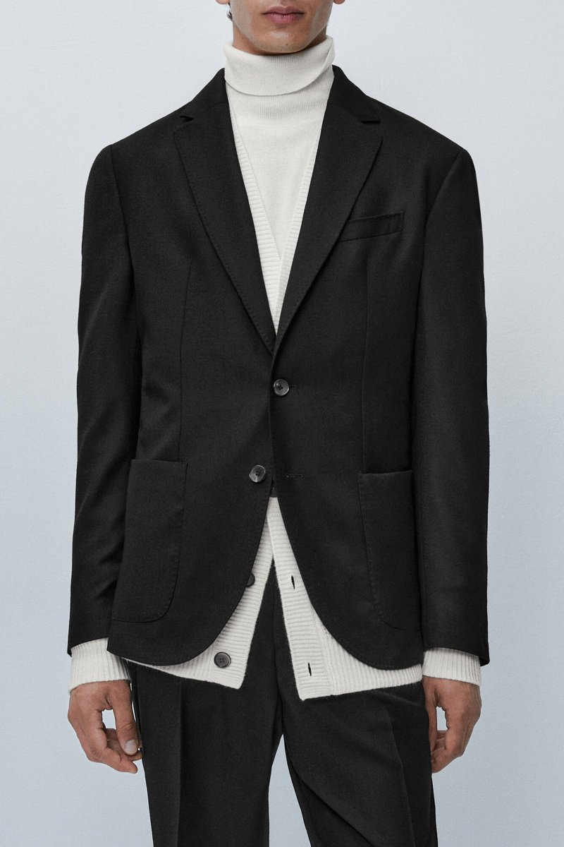 Blazer noir en laine finition flanelle dont le design délicat et net axé sur le confort respire l’élégance.