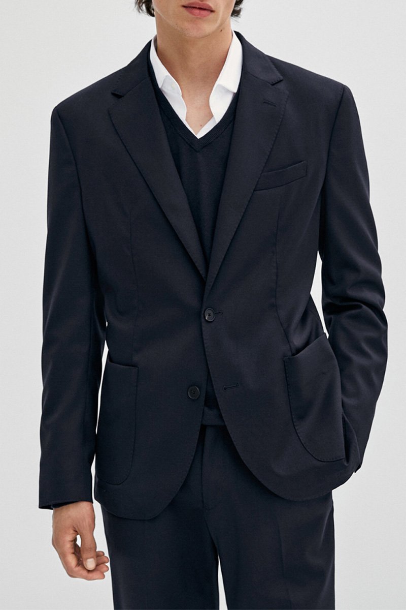 Veste de costume bleue micro texturée en laine - Bleu marine