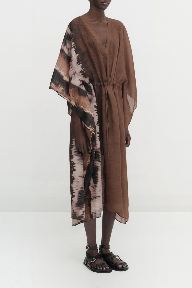 Robe tunique ramie tie-dye - Marron foncé