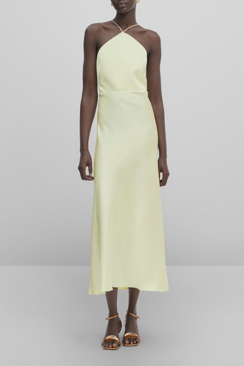 Robe longue satinée à bretelles fines - Studio - Vert
