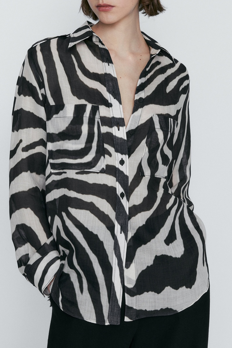 Chemisier ramie imprimé zèbre - Noir et blanc