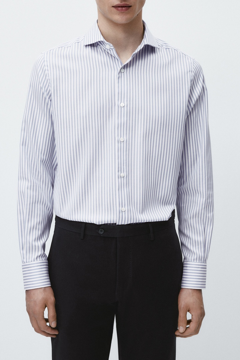 Chemise rayures texture easy iron slim fit - Bleu clair et blanc