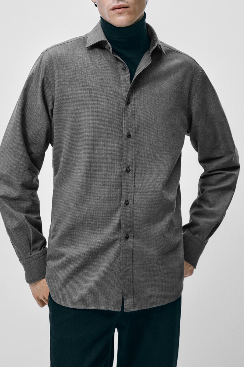 Chemise 100% coton à motif pied-de-poule coupe slim - Gris foncé