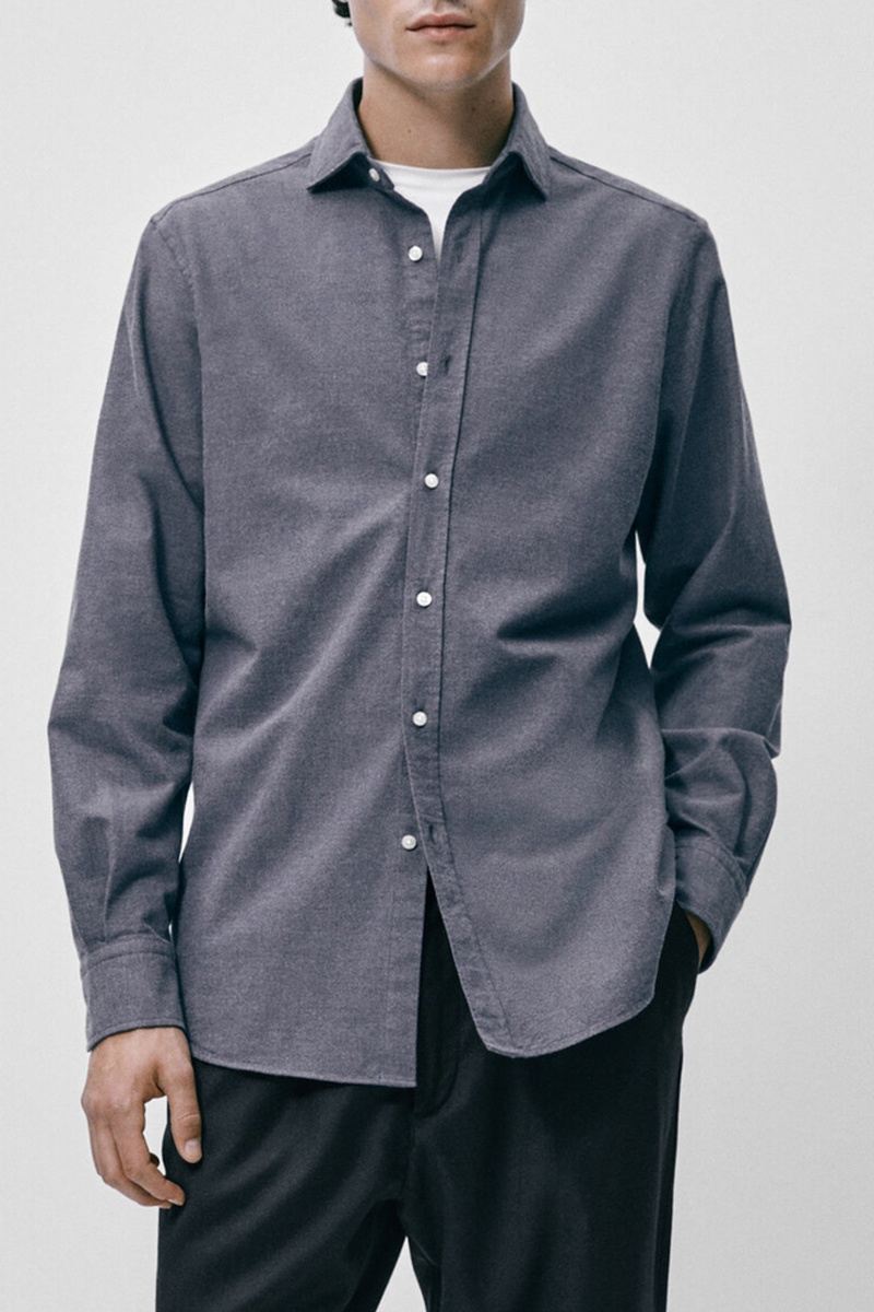 Chemise texturée coton coupe slim - Gris foncé chiné
