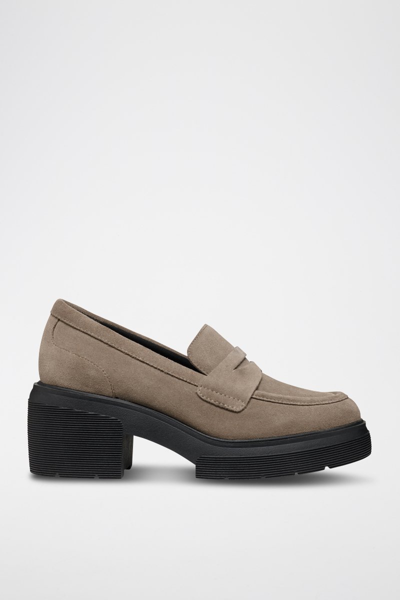 Mocassins à talons en cuir de veau nubuck Spherica - Taupe