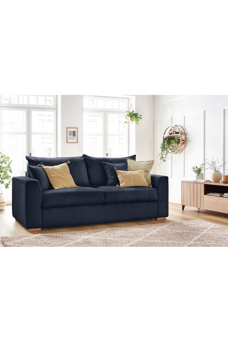 Canapé convertible Augustin - Bleu foncé - 3 places - En tissu velours côtelé