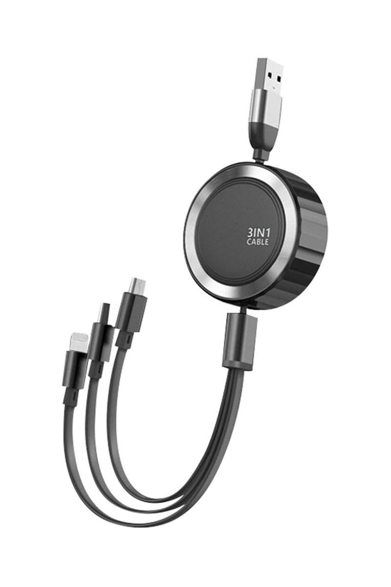 Câble rétractable 3 A Eko - 3 en 1 - 1,2 m