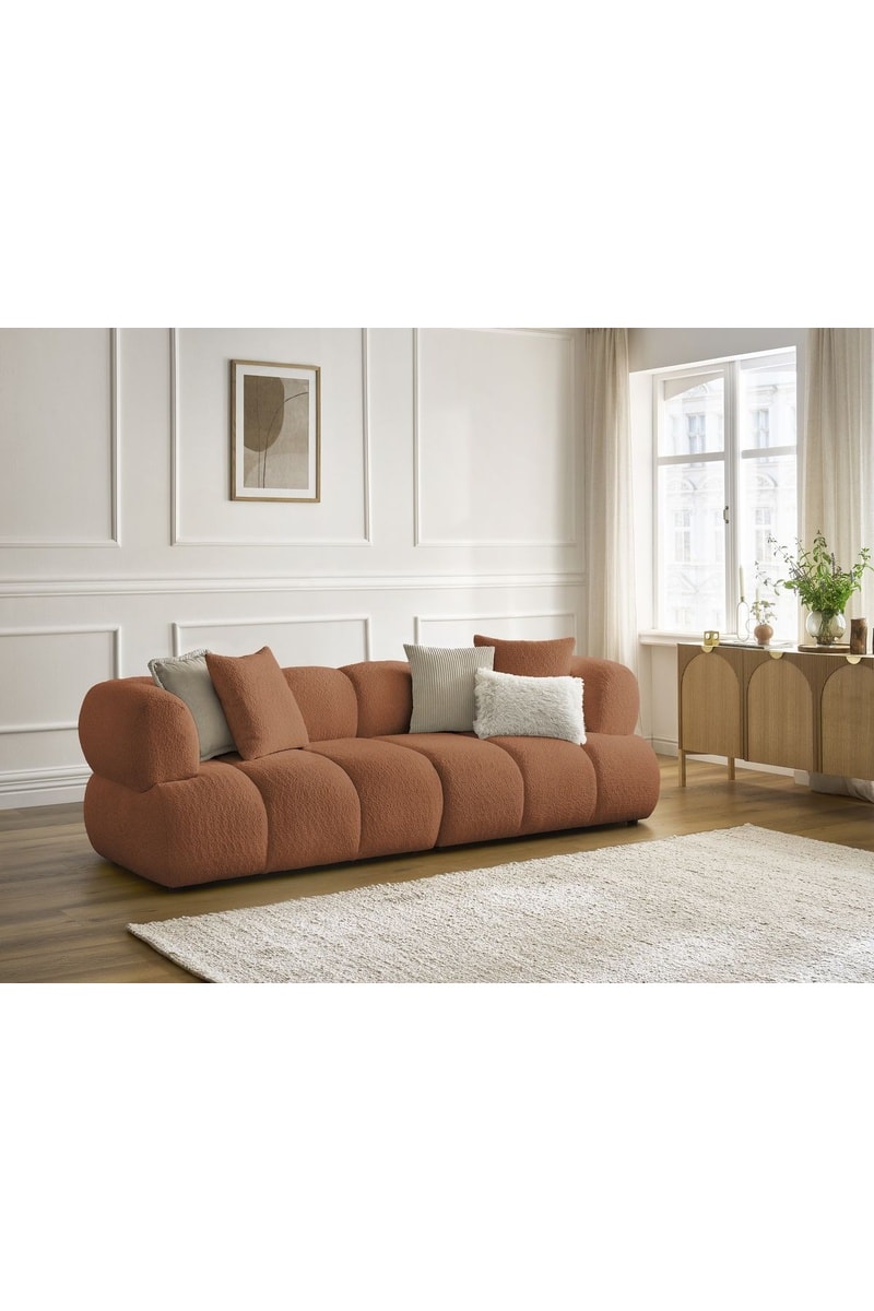 Canapé Pamira - Marron - 3 places - En tissu bouclette