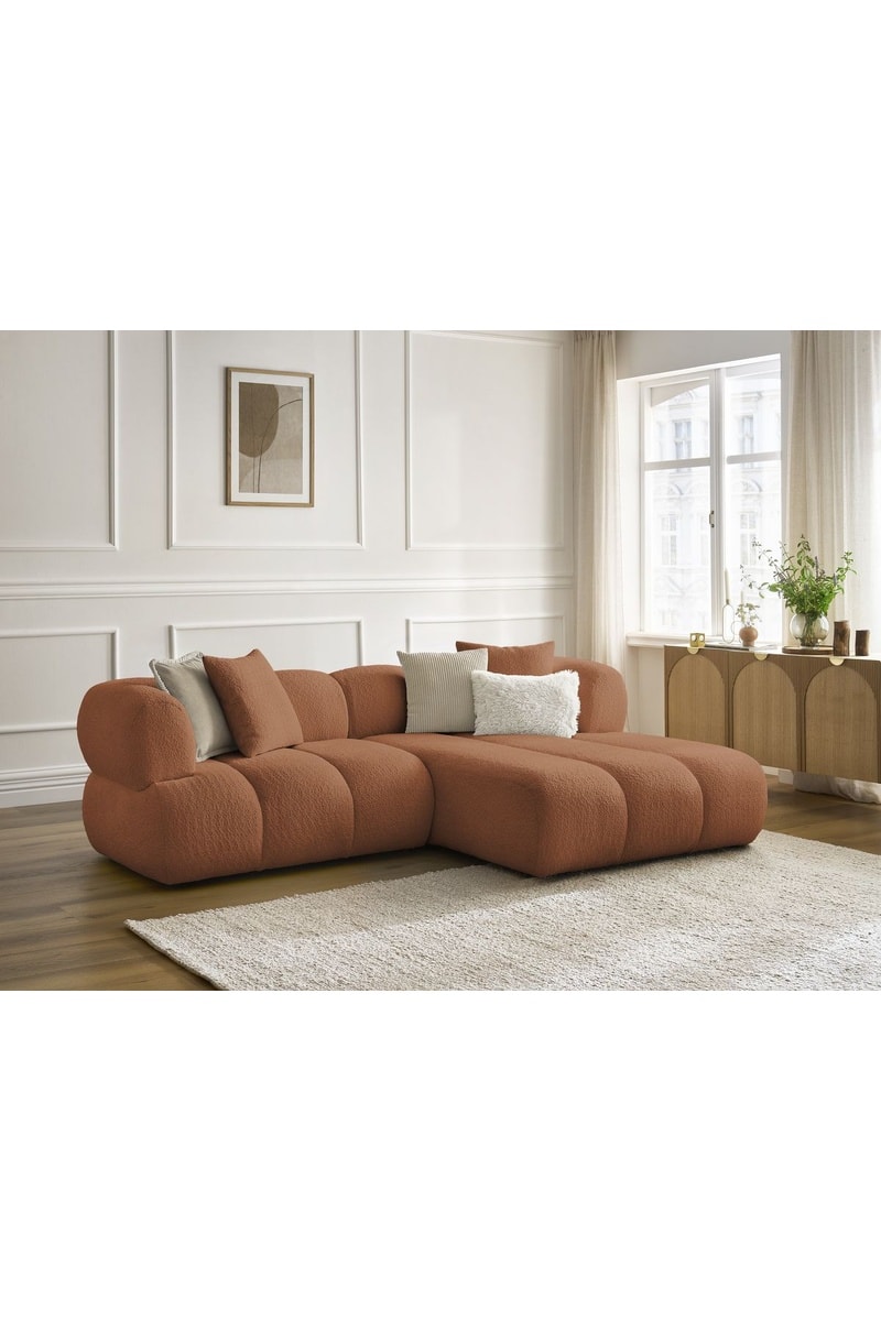 Canapé d'angle droit Pamira - Marron - 4 places - En tissu bouclette