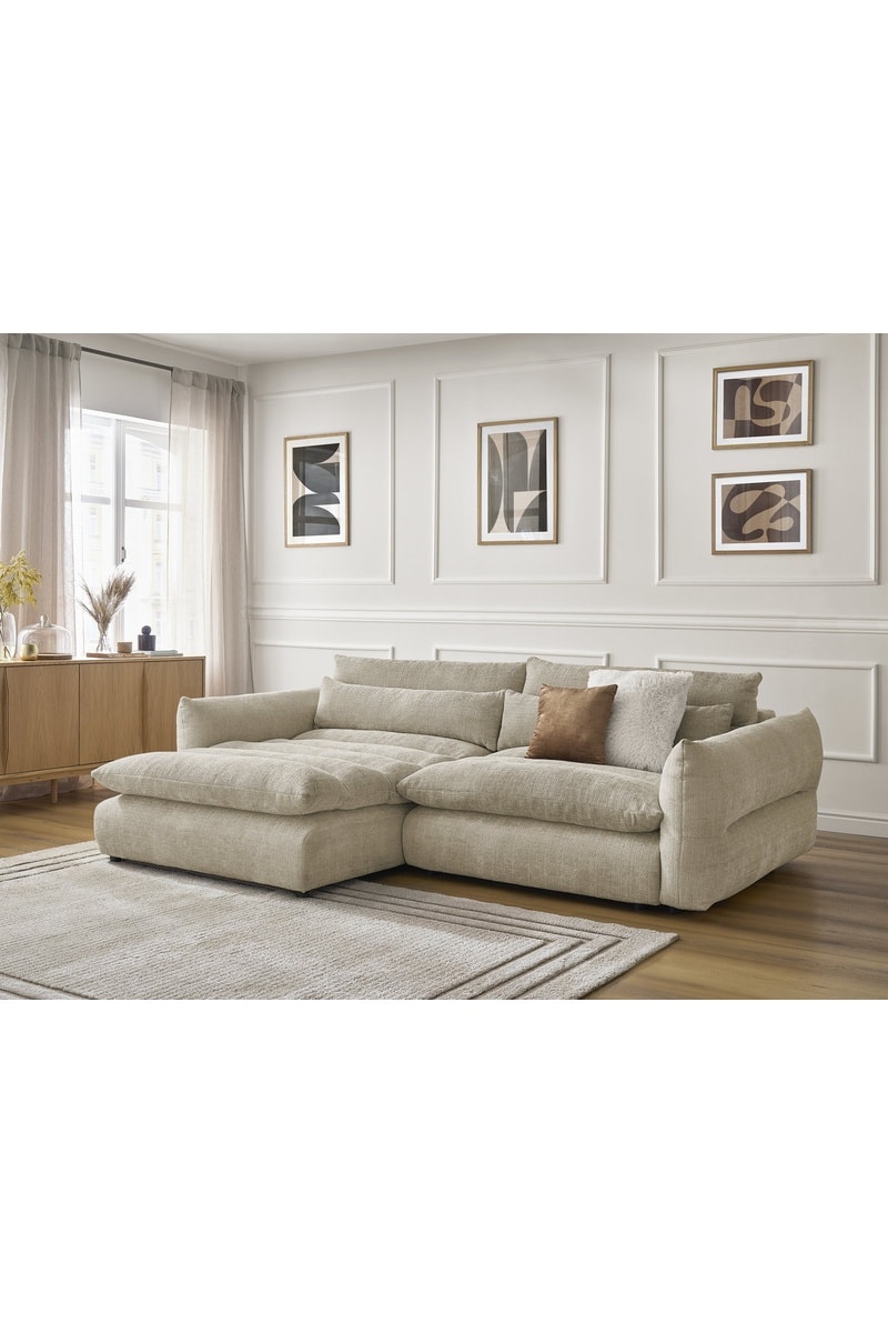 Canapé d'angle gauche Neil - Beige - 3 places - En tissu polyester