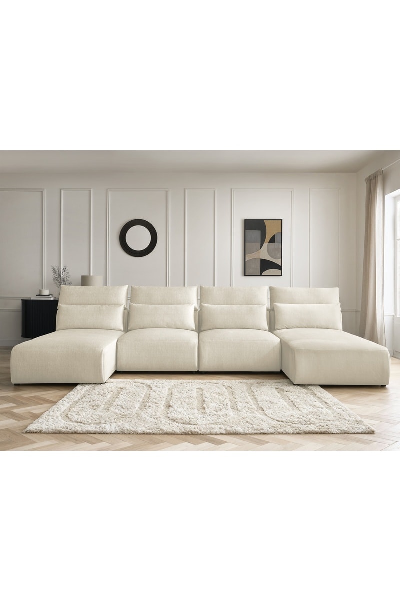 Canapé d'angle panoramique Jana - Beige - 4 places - En tissu velours